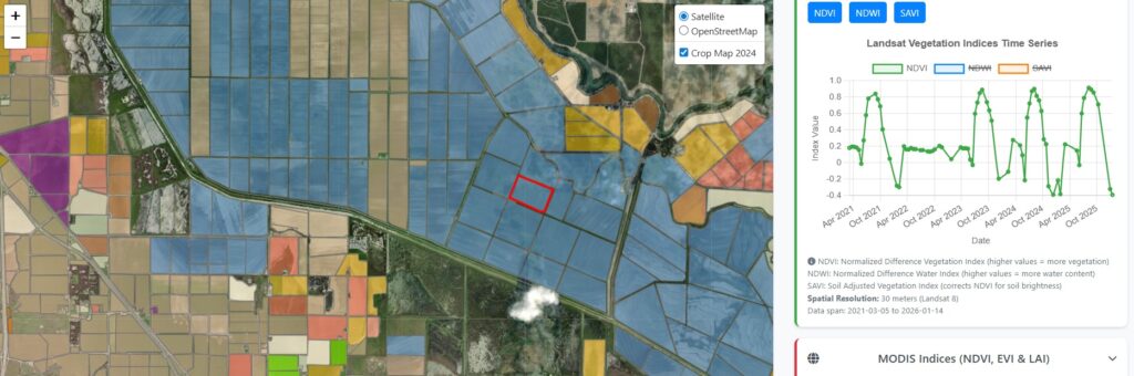 Taking a field that was planted with Rice in 2024 as an example, and choosing 5 years of data